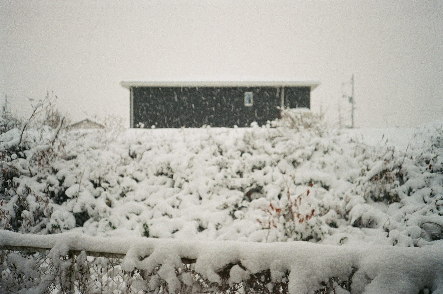 We stayed in Kyoto for one night before taking the train northeast into Shiga Prefecture, skirting the southeastern edge of Lake Biwa. It began to snow again. The white hills grew into mountains while the fields stared back in awestruck blankness. At the next station, we took a taxi farther out. We went over a bridge that had sprinklers installed to help douse some of the ice off the windshield.